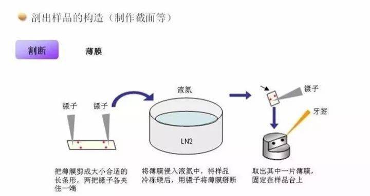 对于薄膜类的样品,可以用液氮粹断,如下图