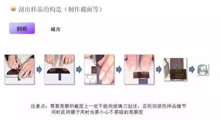 根据不同样品材质,有的时候是正面掰好,有的时候是从背面掰好。
