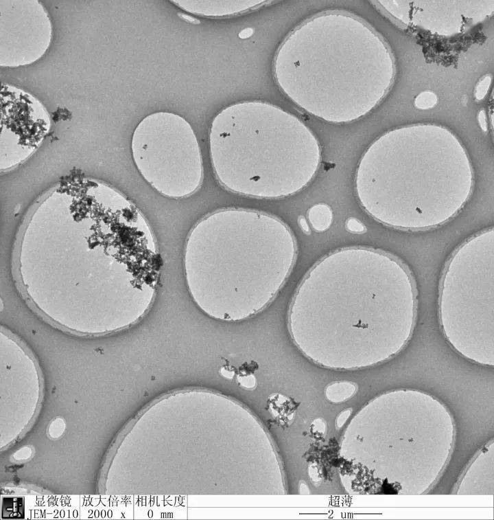 在制作支持膜时,特意在膜上制作的微孔,所以也叫“微栅支持膜”,它也是经过喷碳的支持膜,一般膜厚度为15-20nm。它主要是为了能够使样品搭载在支持膜微孔的边缘,以便使样品“无膜”观察。无膜的目的主要是为了提高图像衬度。所以,观察管状、棒状、纳米团聚物等,常用“微栅”支持膜,效果很好。特别是观察这些样品的高分辨像时,更是最佳的选择。